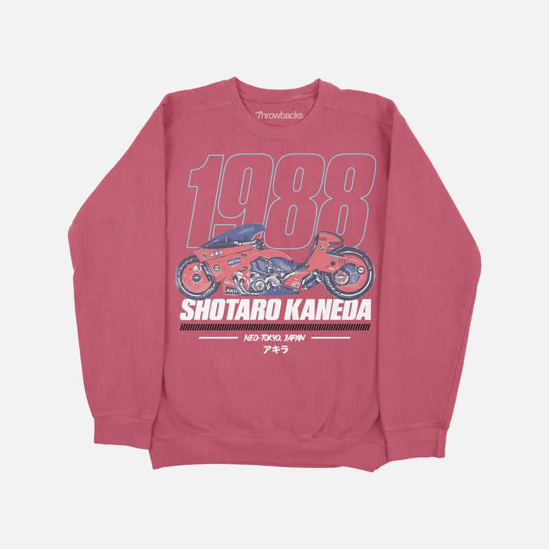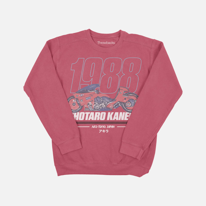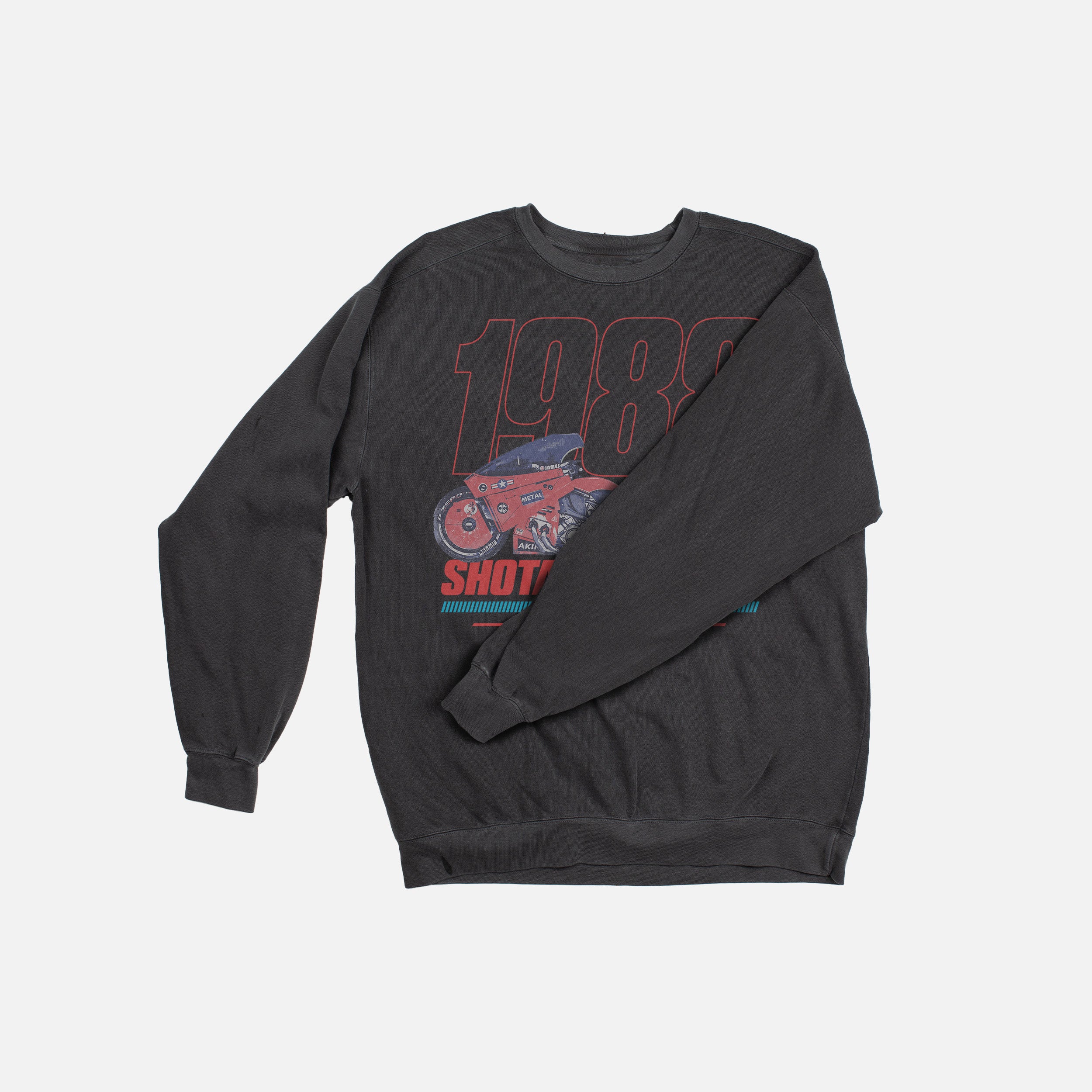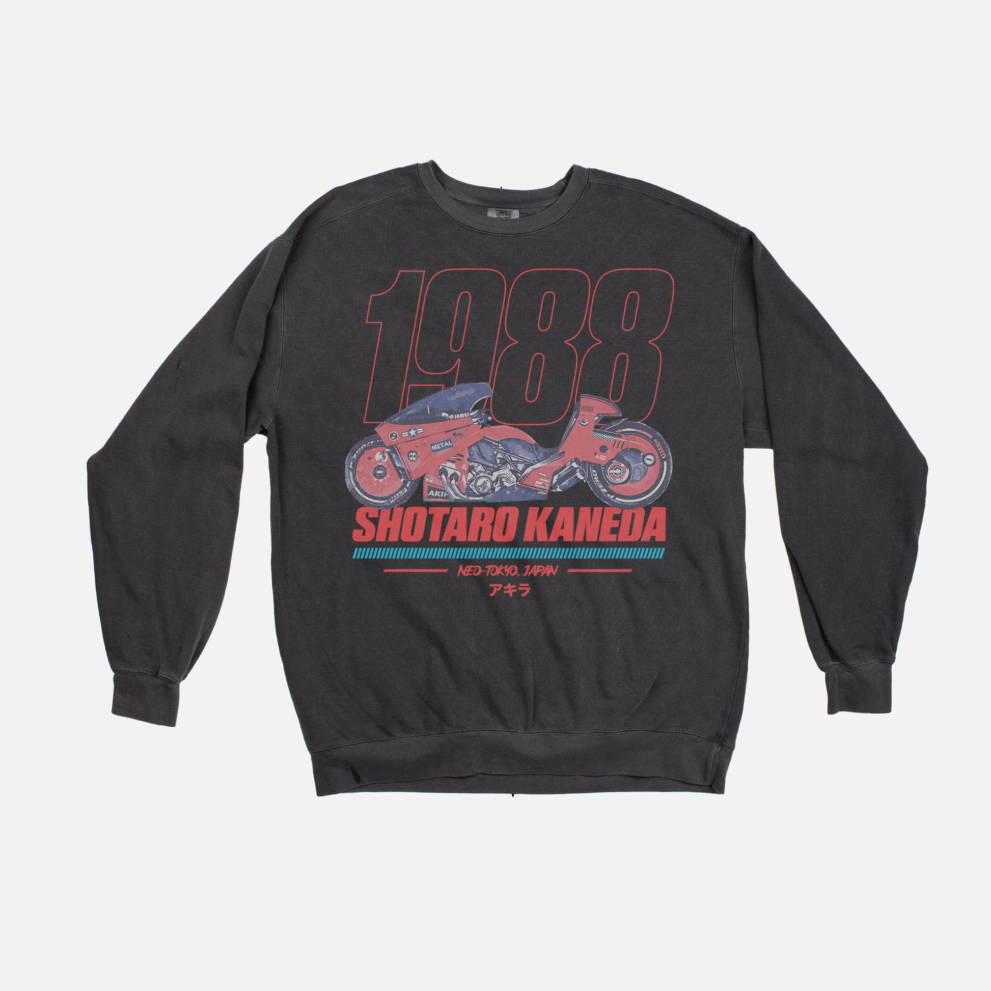 Retro Akira Inspired Anime Crewneck Sweatshirt in Heavyweight Faded Washed Black or Red