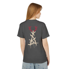 This retro detective tv shirt features a spiral with the words "Time is a Flat Circle" on the front and a large carcosa figure/symbol with deer antlers on the back. This vintage tv show graphic tee shirt is a true piece of memorabilia for fans of Matthew McConaughey, season one, or anybody needing cool gothic detective apparel.