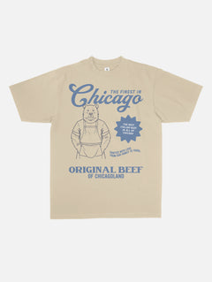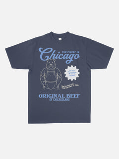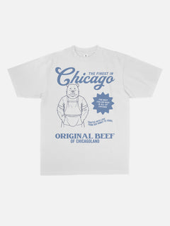 Inspired by one of the most popular shows on television, this retro The Bear TV Show graphic t-shirt features a custom illustration of a restaurant advertisement for the Original Beef of Chicagoland. Featuring a bear for Jeremy Allen White's character, this t-shirt is the perfect piece of TV show apparel memorabilia for anybody who loves the TV show The Bear, Jeremy Allen White, Chicago, or just needs a retro restaurant graphic t-shirt.