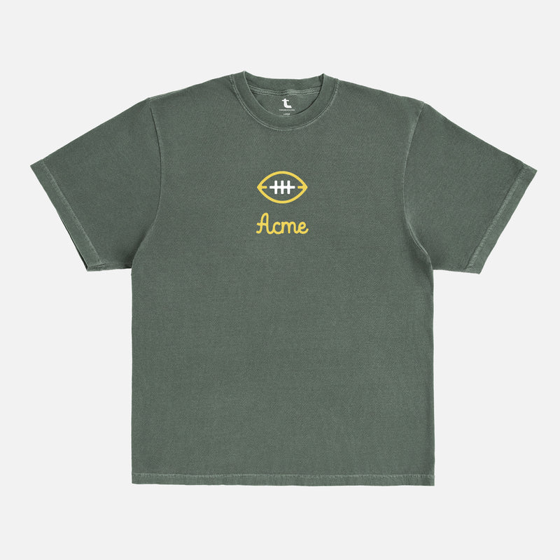 Throwbacks Green Bay Acme Football Inflate Edition T-Shirt features front and back print feels like it belongs in the stands of a frozen stadium. The heavyweight distressed green Comfort Colors material is soft but substantial, and the artwork leans into timeless football iconography, celebrating small-town loyalty and big-time history. A bold Green Bay Acme football logo on the front sets the tone, while the back graphic brings full vintage charm for Green Bay Football diehards who know every era by heart. It’s the kind of shirt that looks just as good under a flannel or jacket as it does on its own once you finally thaw out inside.