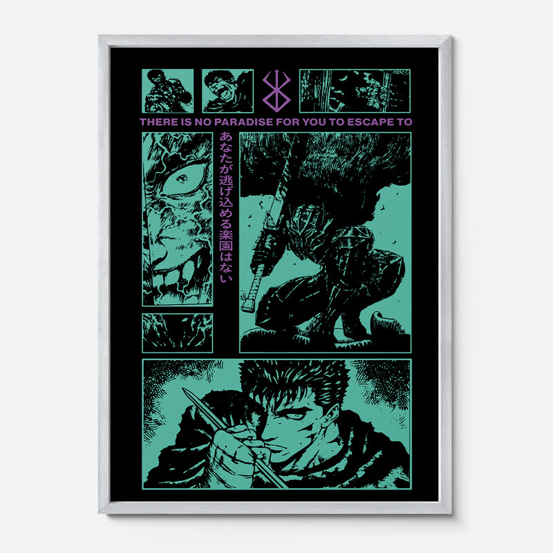 Berserk Anime Poster Print, 90s Manga Wall Art Decor
