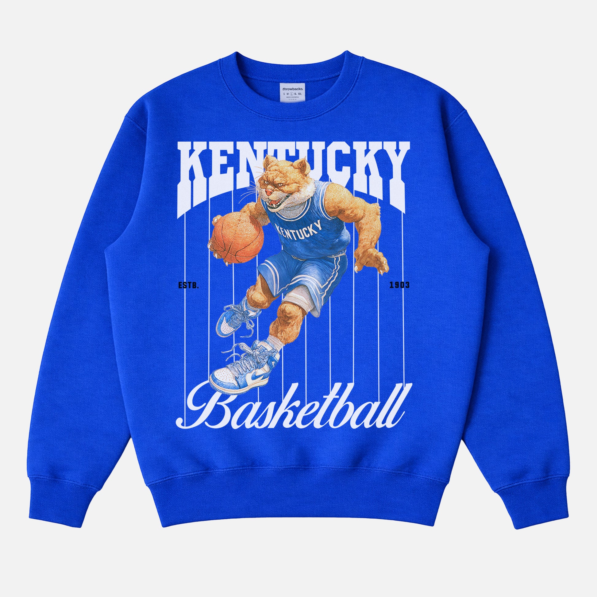 Printed on a heavyweight, soft-fleece crewneck, this sweatshirt features a relaxed unisex fit that layers easily over tees and under jackets for game days or everyday wear. The pinstripe college basketball graphic makes it an instant statement piece—perfect with jeans, joggers, or sweatshorts whether you’re in Rupp, at the bar, or watching from the couch.