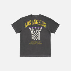 The strong visual impact of the LA Basketball Hoop T-Shirt nods to basketball's roots in Los Angeles, celebrating both local legends and up-and-coming talent. Inspired by classic LA streetwear, this shirt seamlessly blends athletic attitude with everyday style. Layer it under a bomber for a night out or pair it with joggers and sneakers for a laid-back court-side look—its versatility is as unmatched as the game's overtime thrillers. Throwbacks has the best collection of modern and retro basketball apparel for sale online.