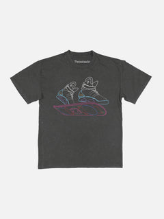 Head to the future and bring back this awesome neon hoverboard illustration tee shirt. Featuring Marty's famous high top sneakers he wore while riding his hoverboard, this retro movie tee shirt is designed with neon outlines to give it an awesome look and makes it the perfect gift for movie lovers needing an awesome retro movie t-shirt.