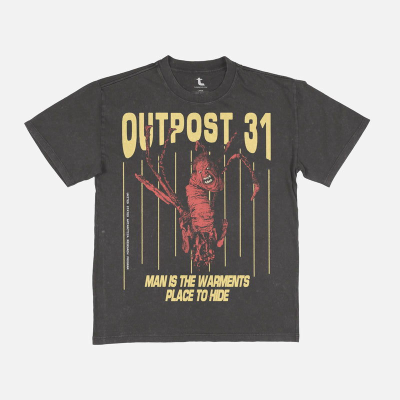 The shirt is the lastest addition to our awesome collection of horror movie t-shirts and is designed for comfortable everyday wear while displaying your appreciation for influential horror cinema. The Outpost 31 branding references the Antarctic research station setting from the film, adding an authentic touch that knowledgeable fans will recognize.