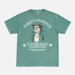 It's always sunny in Philadelphia when you wear this hilarious Paddy's Irish Pub t-shirt featuring a custom retro illustration of a St. Patrick's Day even and Frank Reynolds dressed as a leprechaun printed on a unisex Comfort Colors t-shirt. We have a wide range of always sunny graphic tees and sweatshirts and this is the perfect tv show t-shirt for always sunny days or to wear as your St. Patrick's Day apparel or simply to pay homage to Paddy's Pub merch with this funny retro Irish bar restaurant t-shirt for men and women.