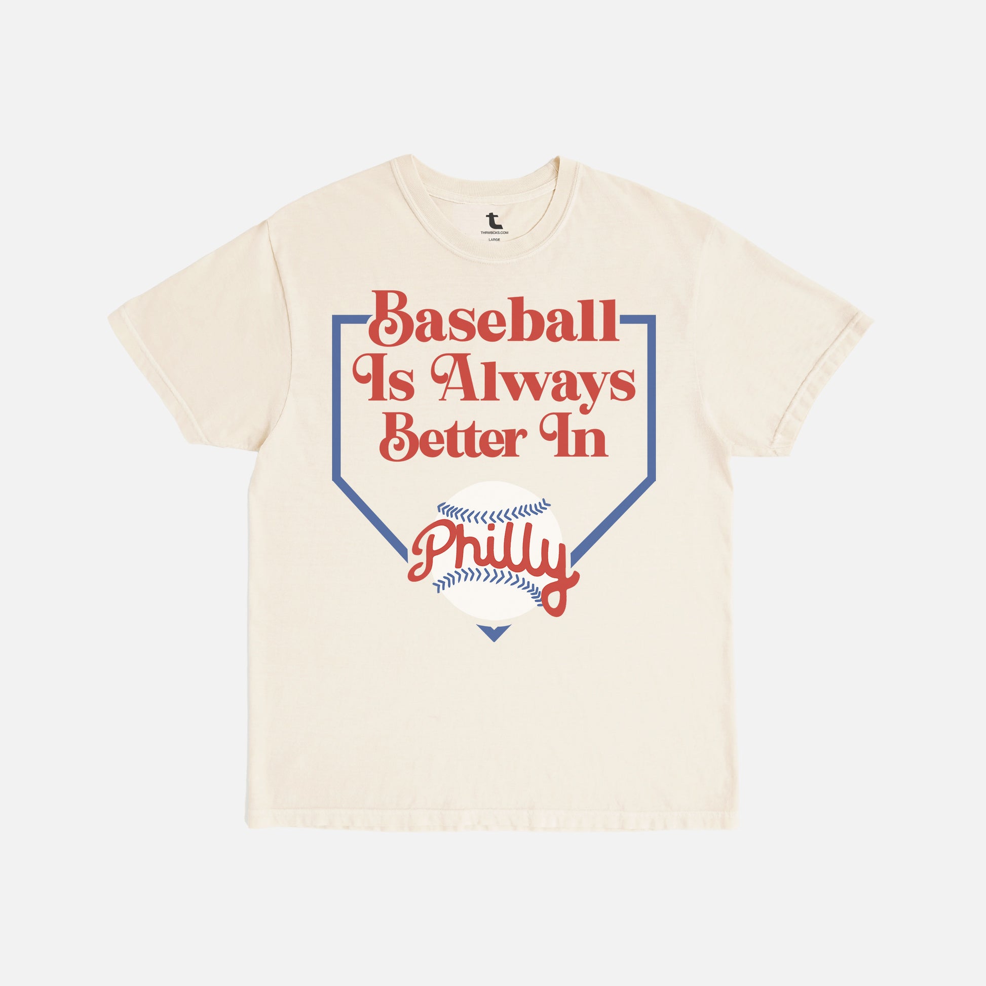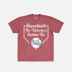 The retro Philadelphia baseball t-shirt by Throwbacks was designed to pay homage to the Phillies' storied history and the loyal fanbase that defines the city. Whether you're tailgating with friends, catching the game at your favorite bar, or walking down South Street, this retro baseball T-shirt completes your fit with authentic Philadelphia style. Like all of the vintage baseball apparel for sale at Throwbacks, this retro Philly baseball graphic tee is a go-to for game days, post-game hangouts, or anywhere you want your Phillies pride to stand out. The premium fit works for all-day wear while keeping your look fresh and distinct, and the striking team colors demand attention.