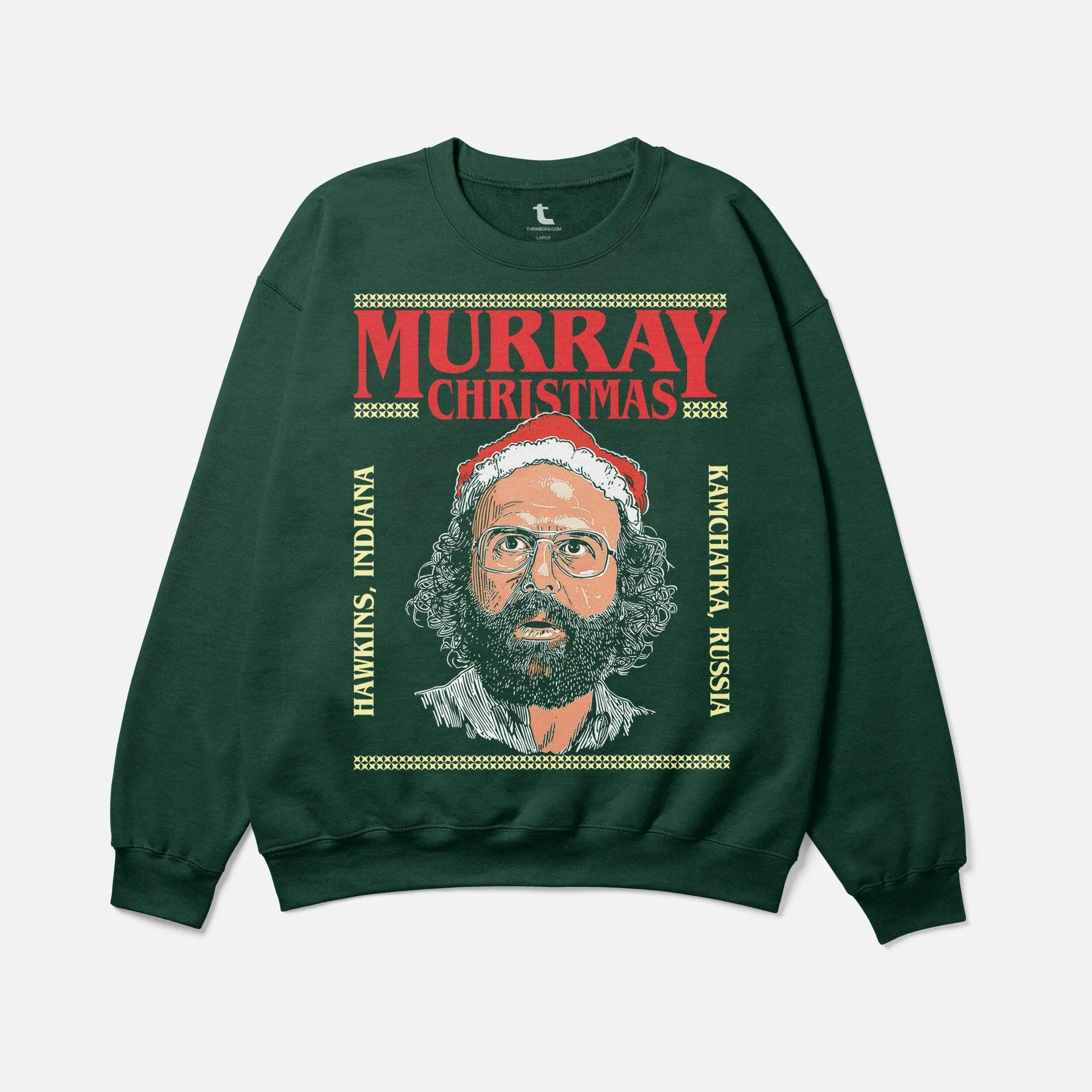 Bring humor, nostalgia, and a hint of Hawkins, Indiana to your holiday season with the Murray Bauman Christmas Sweater! Inspired by the unforgettable character Murray Bauman from the cult favorite TV show this funny retro Hawkins Indiana ugly Christmas sweatshirt features a retro illustration of Murray you certainly will not see stranger things than this hilarious piece of memorabilia. Available in red, green, and grey, this funny tv show Christmas sweatshirt is available in a unisex fit and a stranger piece of memorabilia TV show apparel to add to your collection of funny Christmas movie sweaters this holiday season. The Murray Christmas Sweater delivers both style and a playful spirit. Make your season merry, bright, and just a little bit stranger!