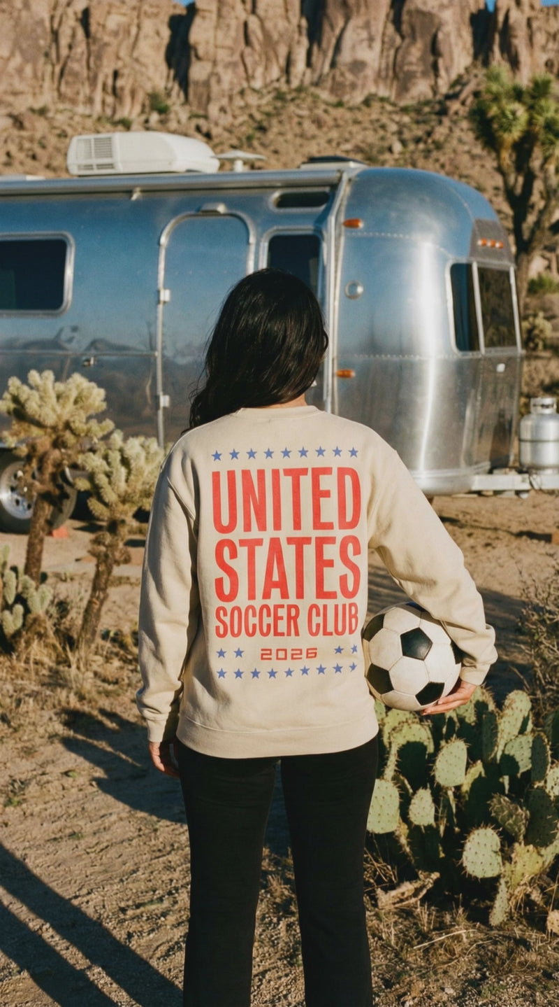 Available in navy, blue, and grey, each sweatshirt features a custom front US-inspired soccer logo that keeps things minimal up front, while the oversized full back print turns it into a statement piece from behind. Bold typography, modern shapes, and subtle nods to classic U.S. kit design make it easy to pair with jeans, joggers, or track pants for match days or everyday wear.